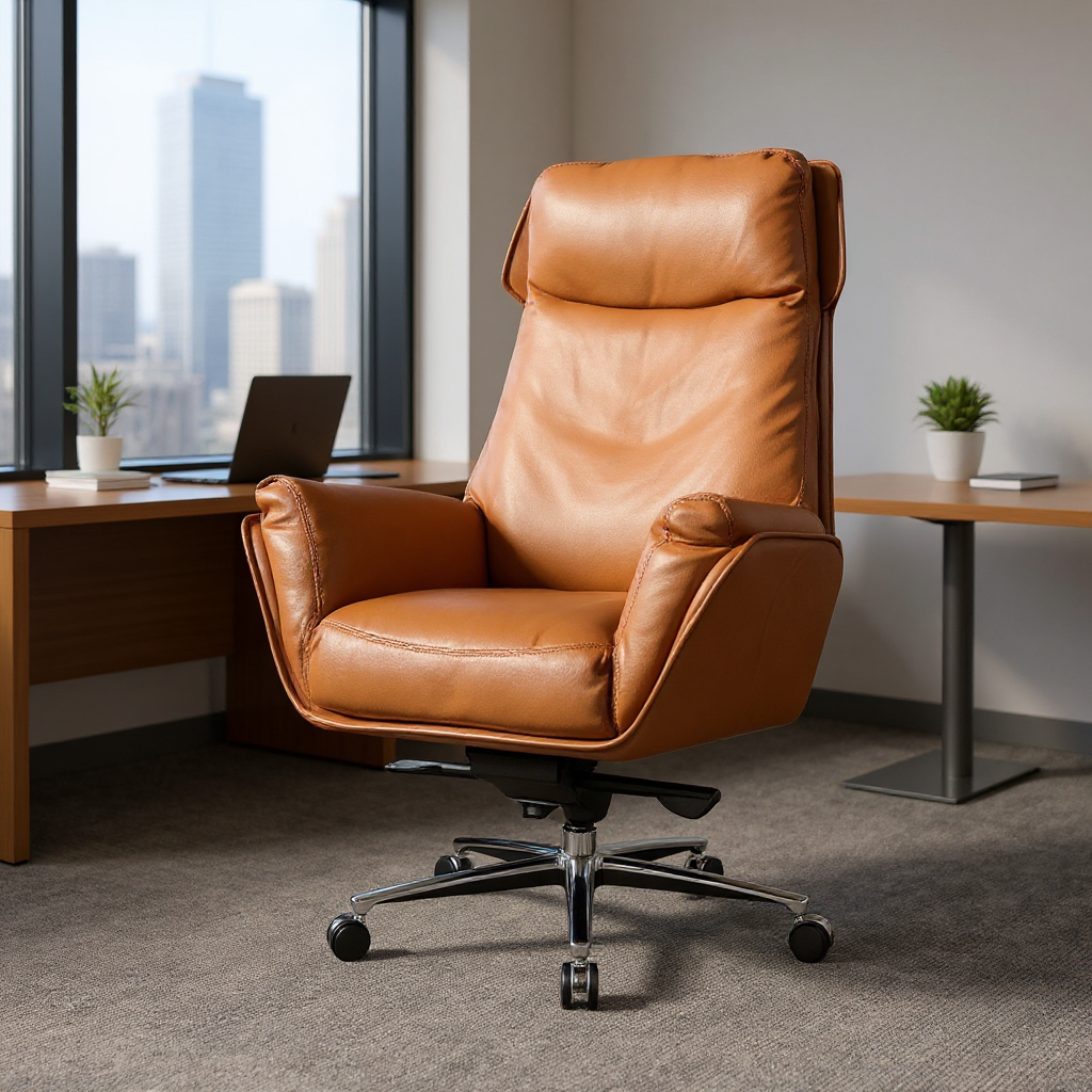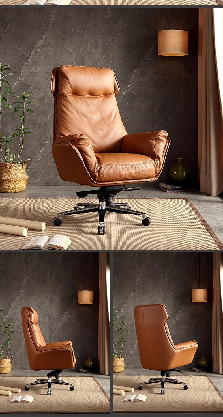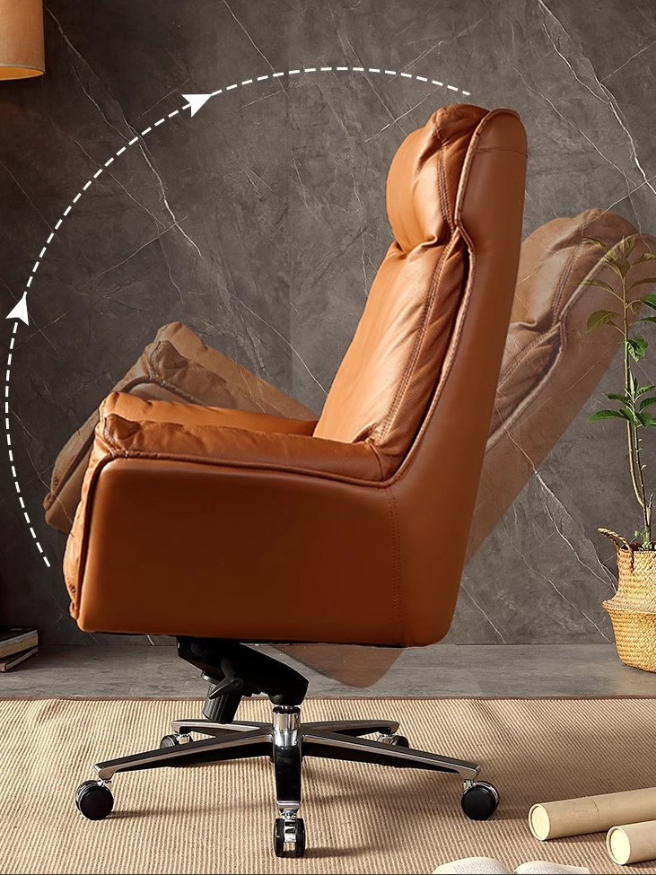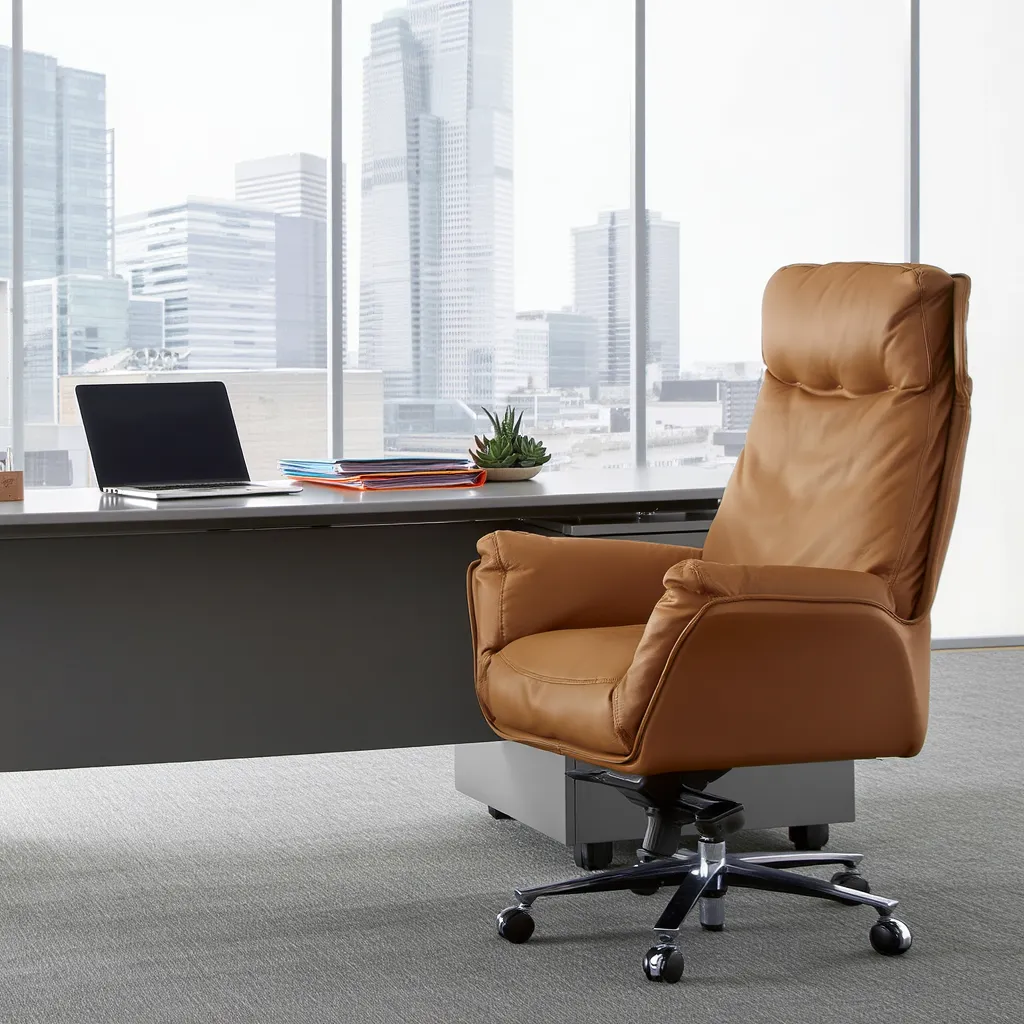 This leather office chair, designed for long hours of work, combines ergonomics, high-end materials and multifunctional adjustment system to bring you an unprecedented sitting experience.